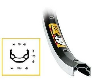 Felge RIGIDA ZAC 19 geöst 36 Loch 28 Zoll ETRTO 622 x 19 schwarz mit geschliffenen Bremsflanken